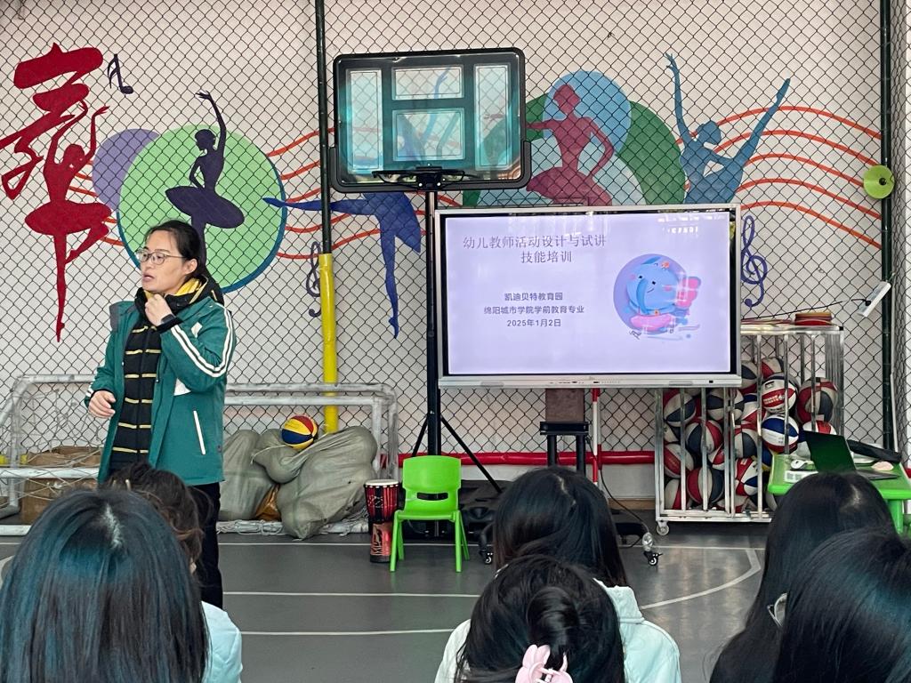 “一师一联企”项目作为双方合作的重要成果,通过搭建高校与幼教企业之间的沟通桥梁,实现了资源共享、优势互补。2025年1月2日-2025年1月3日,双方共同组织了一系列实践活动,让员工在真实的工作环境中得到锻炼和提升。其中,特别邀请了凯迪贝特教育园的优秀一线教师为员工进行专题培训,帮助他们掌握幼儿教师活动设计与试讲技能。