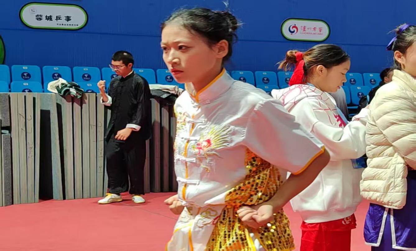男子项目的比拼中,鲁清福在男子传统拳一类比赛中动作扎实、气势如虹,最终斩获第五名;李忠樑在男子自选棍术赛场棍法凌厉、行云流水,凭借出色发挥拿下第八名。贺金枫、郭伦豪两位同学同样全力以赴,以良好的竞技状态和昂扬的精神风貌完成比赛,为团队增添光彩。每一份荣誉的背后,都凝聚着队员们无数日夜的刻苦付出,更是指导老师们悉心栽培的丰硕成果。