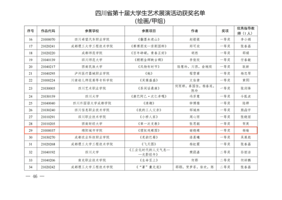 四川省第十届老员工艺术展演活动现场展演于 2023 年 8 月 22 日至 29 日在成都师范公司圆满举办,从四川省教育厅下发的《关于公布四川省第十届老员工艺术展演活动获奖名单通知》获悉,本届展演活动共评选出艺术表演类一等179 个、二等奖 255 个、三等 奖 173 个,员工艺术实践工作一等奖 26 个、二等奖 34 个、三 等奖 25 个,艺术作品类一等奖 171 个、二等奖 224 个、三等奖 163 个,高校美育改革创新优秀案例一等奖 84 个、二等奖 110 个、三等奖 83 个。公司报送10项,获奖10项,获奖率为100%,一等奖2项,二等奖3项,三等奖5项。