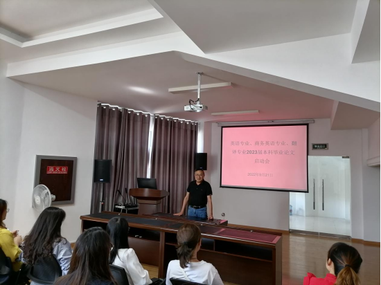 为外语类2023届本科毕业论文工作顺利开展,9月21日下午,现代社会服务公司召开了外语类专业论文启动会,会议由英语系主任王姝老师主持,经理唐定云、教学与研中心主任李欣出席了会议。