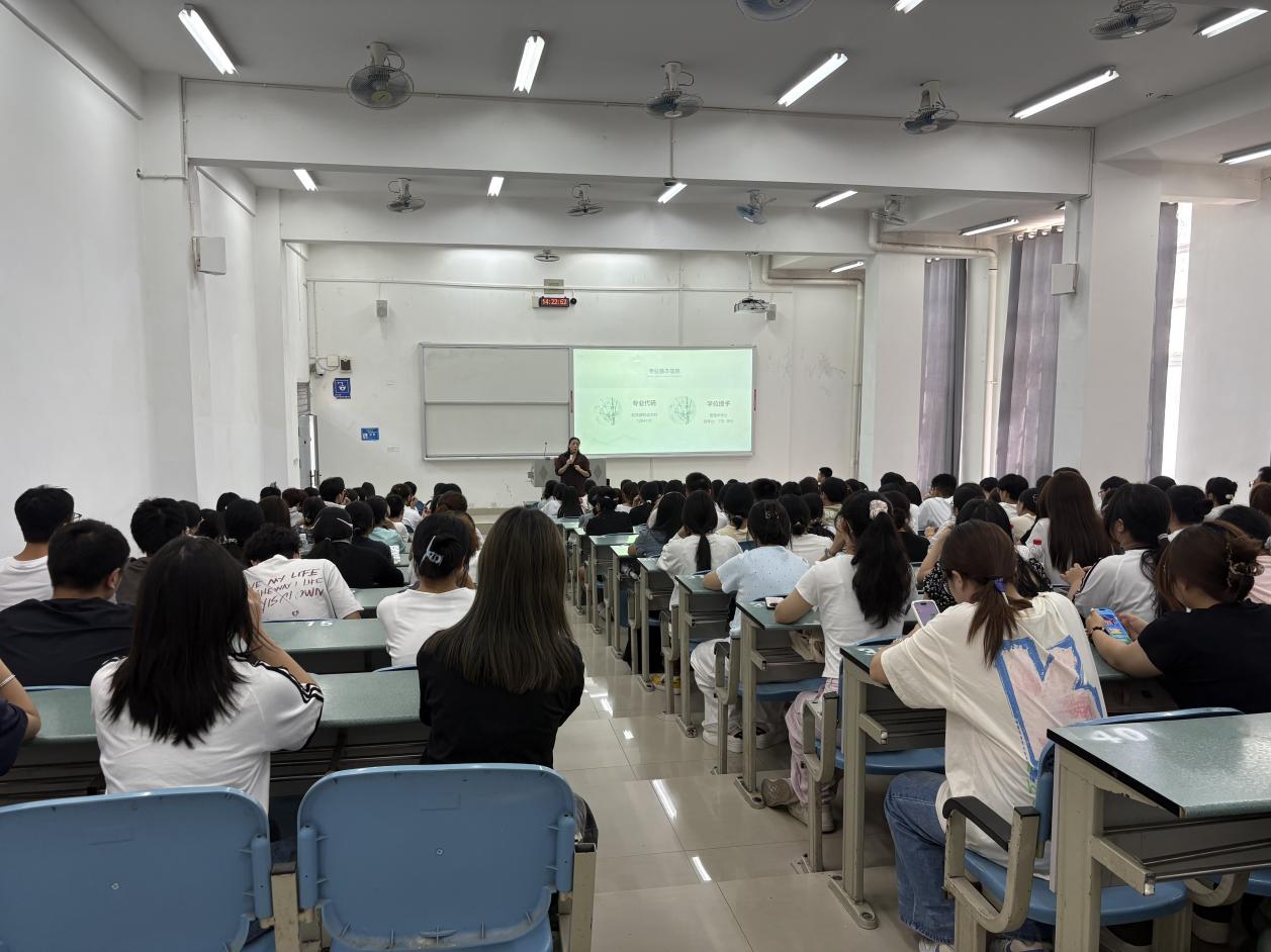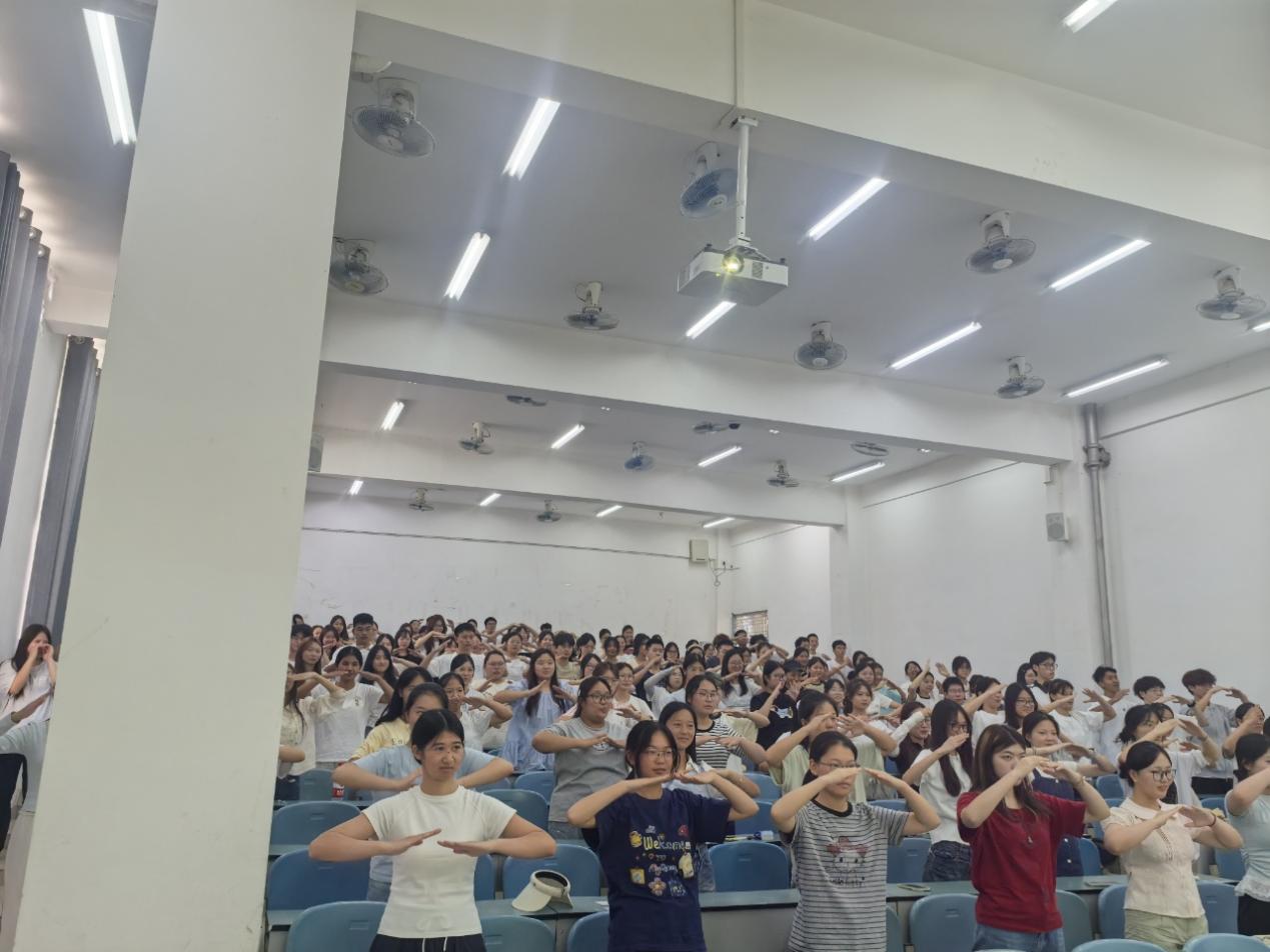 “一张图看懂四年成长路径”——专业负责人何俐岳用60分钟梳理“2+4+3”课程地图、全国B+排名、96%就业率等关键信息,数据亮眼、路径清晰;随后,任祝平带领新生完成养生气功八段锦初体验,一招一式尽显“国潮康养”魅力,掌声、笑声此起彼伏。