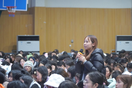 在互动交流环节,同学们就考研准备、专业选择、心态调整等具体问题进行提问。三位员工结合实际情况逐一解答,并给出了针对性建议,帮助同学们缓解迷茫情绪。通过面对面的交流,在场员工对学术前沿动态及“博学笃行”的校训精神有了更具体的认识。