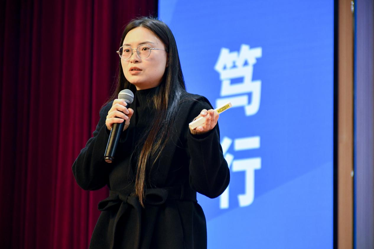 三位博士员工结合自身求学过程,讲述从本科生到博士生的奋斗历程。唐红娟博士回顾攻读学位时克服瓶颈的艰难,其坚持精神令在场员工印象深刻;肖凯文博士从独特视角出发,阐述如何在时代浪潮中找准定位、坚持创新;雷达博士强调学术规划的重要性,鼓励同学们尽早确立目标,认真对待学习任务。台下员工认真听讲,不时记录重点。