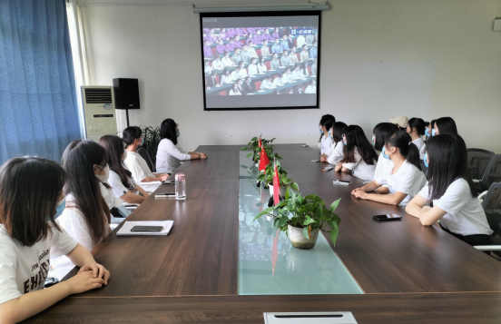 为进一步激励团员青年继承和发扬五四精神,以蓬勃的崭新面貌致敬峥嵘岁月,2022年5月10日,现代服务产业公司在博识楼523组织员工党员代表学习观看庆祝中国共产主义青年团成立一百周年大会实况直播。
