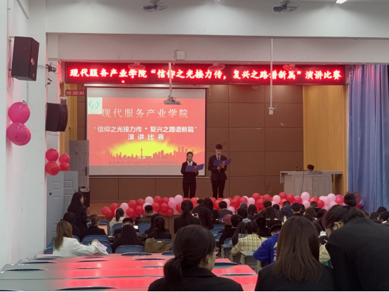 2021年10月21日,现代服务产业公司于博识楼B115举行了“信仰之光接力传•复兴之路谱新篇”主题演讲比赛。公司刘续梅经理、公司党委宣传部安军部长、现代服务产业公司全体行政人员及辅导员老师担任此次活动的评委。2021级部分员工到场观看了此次比赛。